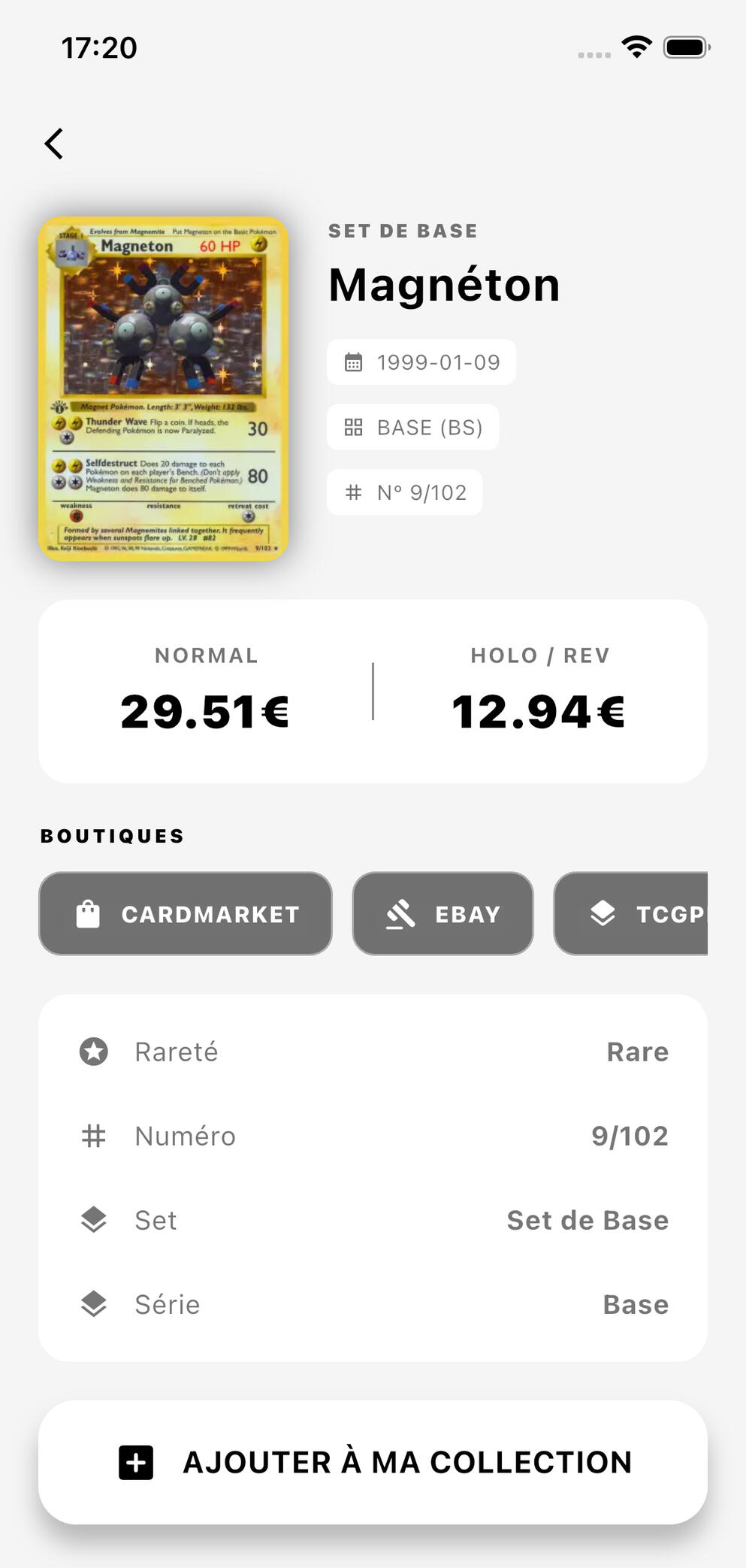 Obtenez les prix de vos cartes, accéder aux annonces des cartes semblables pour évaluer au mieux leur valeur